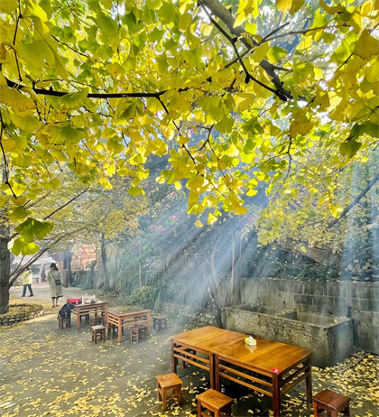 銀杏村位于騰沖市固東鎮(zhèn),距騰沖城40公里,村莊內(nèi)遍布古銀杏樹。每年深秋,整個村莊被一片金黃所包圍,房前屋后,黃葉紛飛,農(nóng)家的屋檐、火山石砌成圍墻,鵝卵石鋪就的小道上,都鋪滿了厚厚落葉,異常美麗。銀杏村歷史悠久,是騰越文化的重要組成部分。其滎陽紙傘和江東刺繡享譽全國。金秋時節(jié)(11月中旬至12月初),古建筑被萬千銀杏樹掩映。