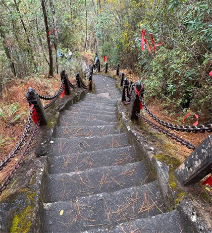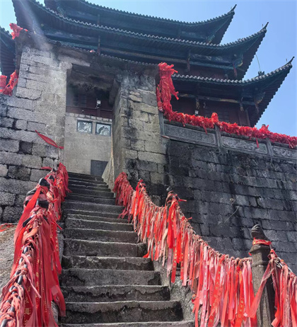 云峰山形如玉筍挺立,直插天際,四周浮云飄蕩,若置仙境,通常云彩只位于主峰半腰,山峰好似長在云層之外,故名“云峰山”。云峰之巔云峰道觀始建于明崇禎七年(公元1634年)至今有380多年歷史。